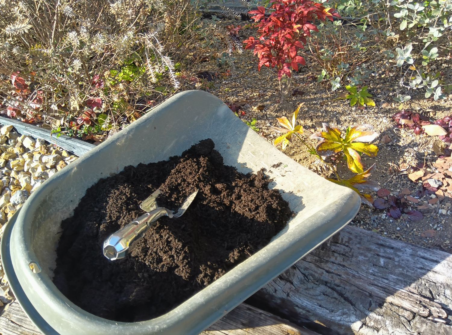 • 植物が寝ている冬だからこそ、少し大胆に土を掘り返しても大丈夫なんです。春になって目が覚めた時、枕元にご馳走があるようなイメージです。