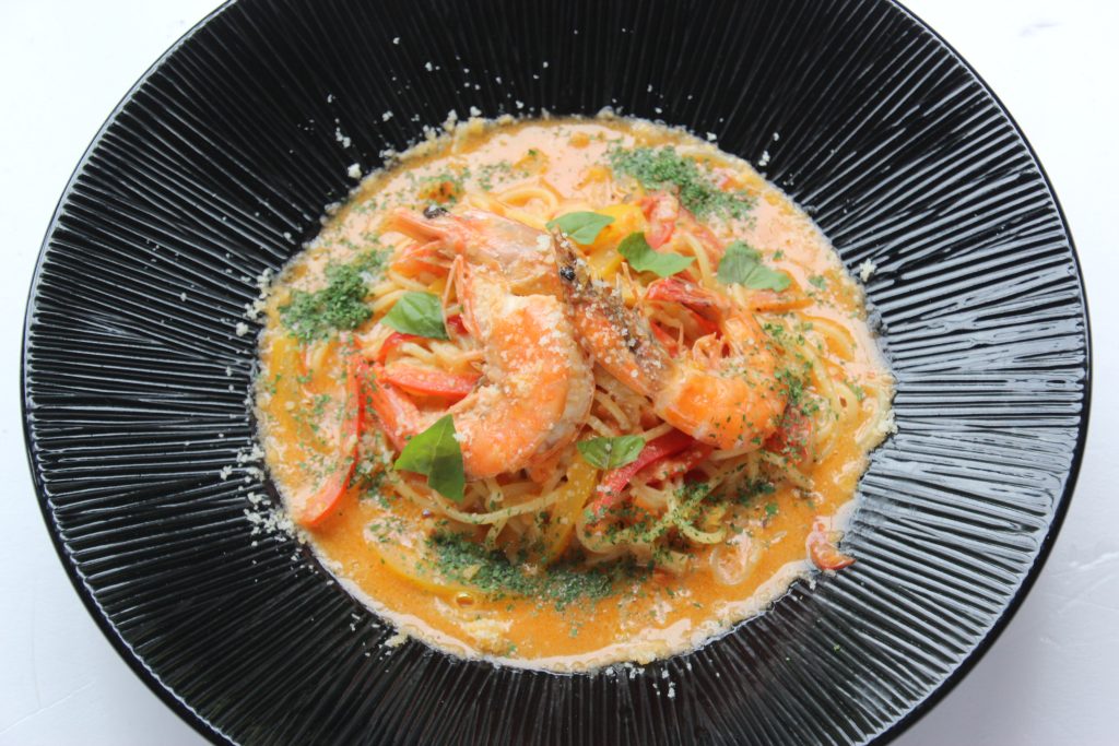 トマトと海老の旨味にクリームで優しいまろやかさを加えたトマトクリームソースが特徴のパスタです。