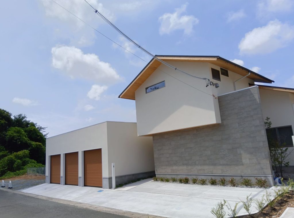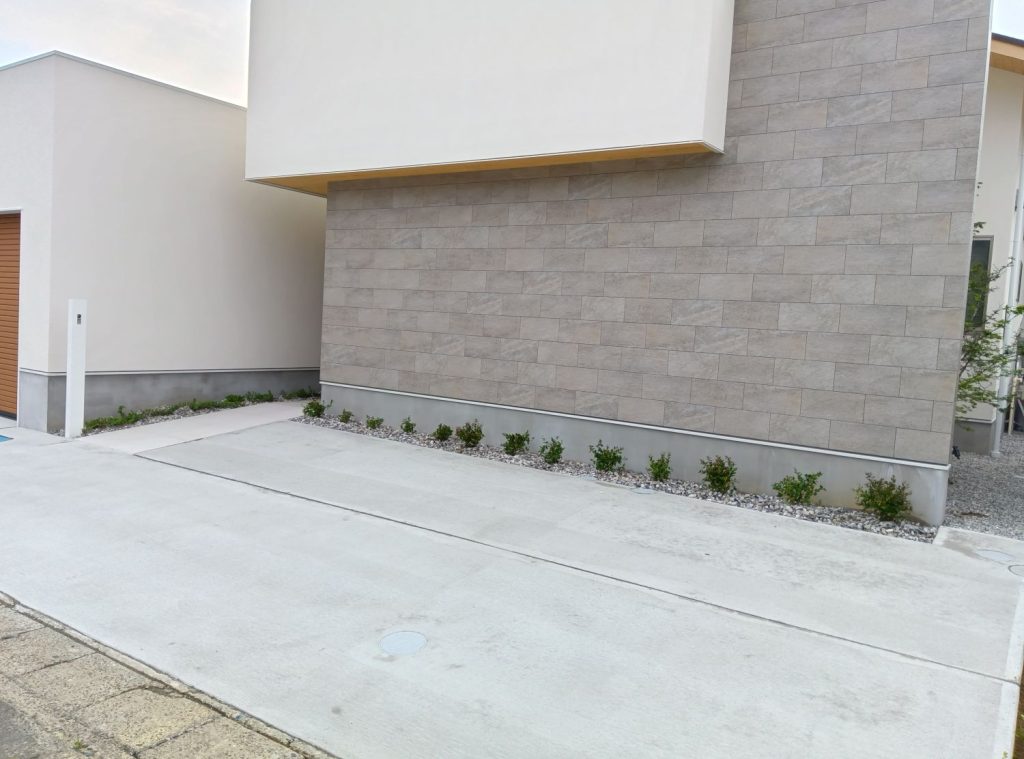 ビルトインガレージと屋外の駐車場、アプローチ(玄関までの通路部分)で成り立っています。