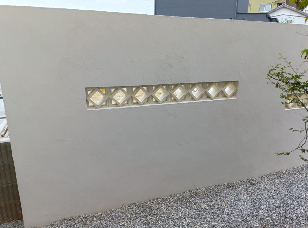閉塞感を和らげ、通気性もよくする”花ブロック”を部分的に埋め込みました。