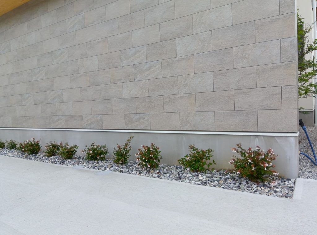 さりげないながらも、建物を囲む縁(ふち)の部分は花壇スペースにして、