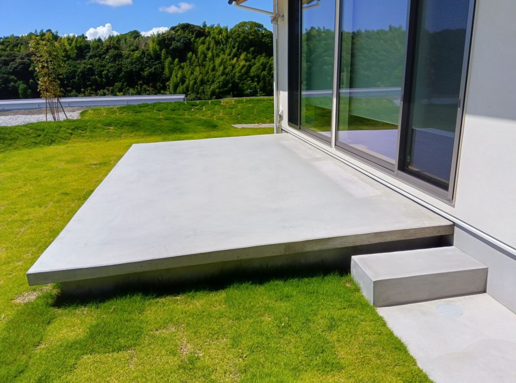 シンプルでスタイリッシュなコンクリートデッキは建物にもよく合っています。