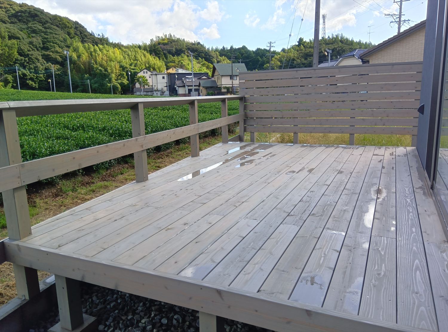 隣家様からのプライバシーを守るため、目隠しフェンスもデッキとおそろいで。