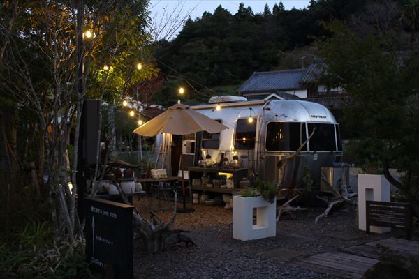 POINT3850:エアストリームにガーランドライトが反射して華やぎのある雰囲気。