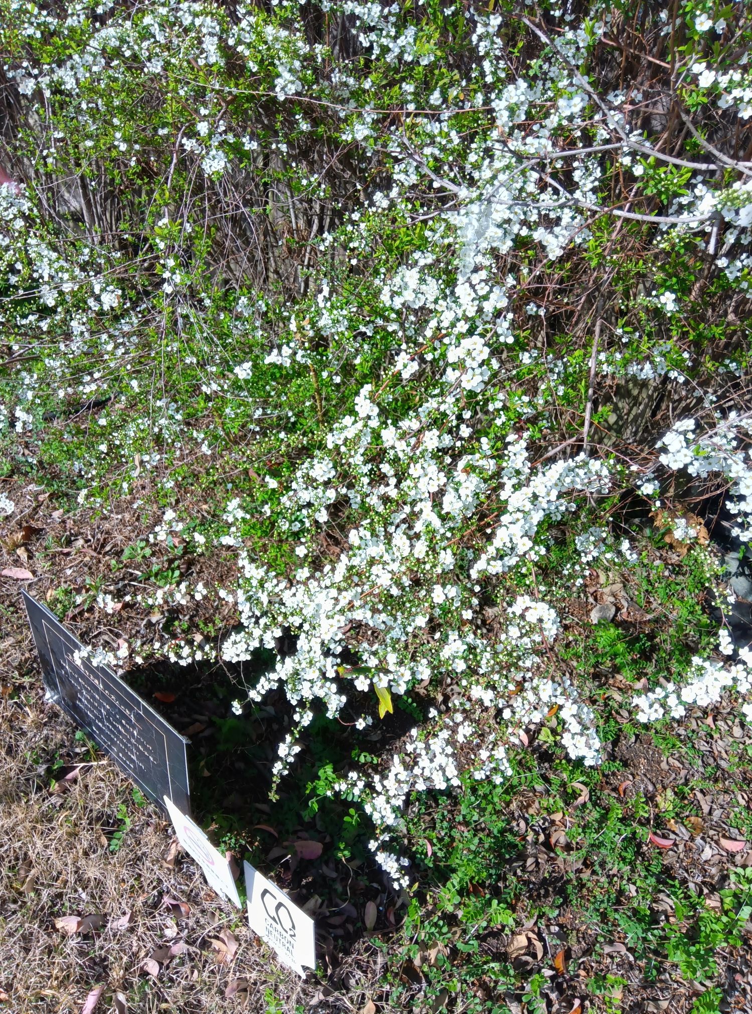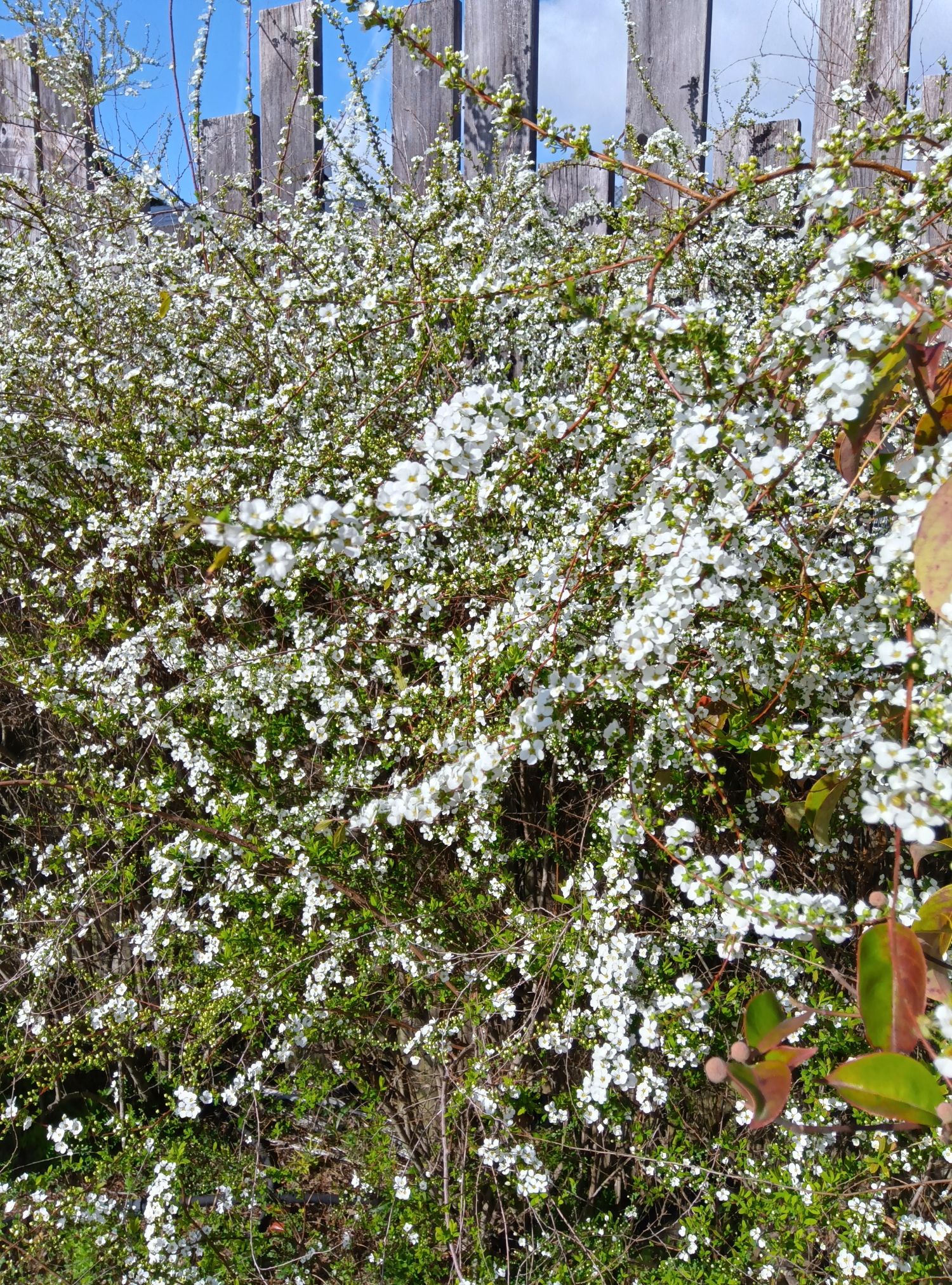 ウッドフェンス・園路沿いのユキヤナギは少しづつ背が高くなり