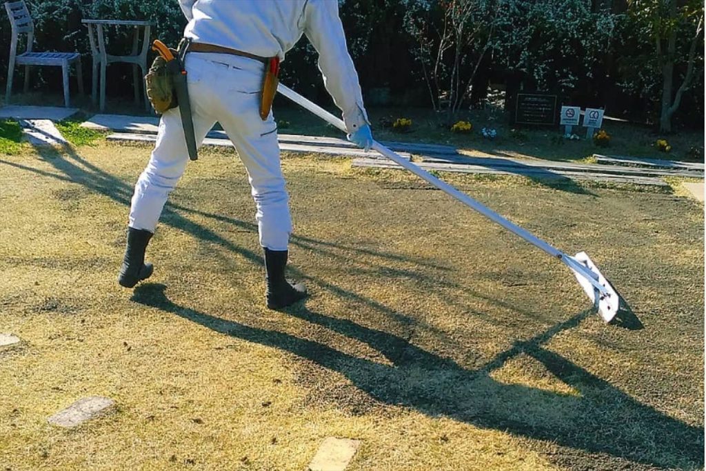 ①芝生のお手入れ方法 芝生が成長する前の春にするとよいお手入れ方法を説明の後、実際に実演しながら学んでいただきます。