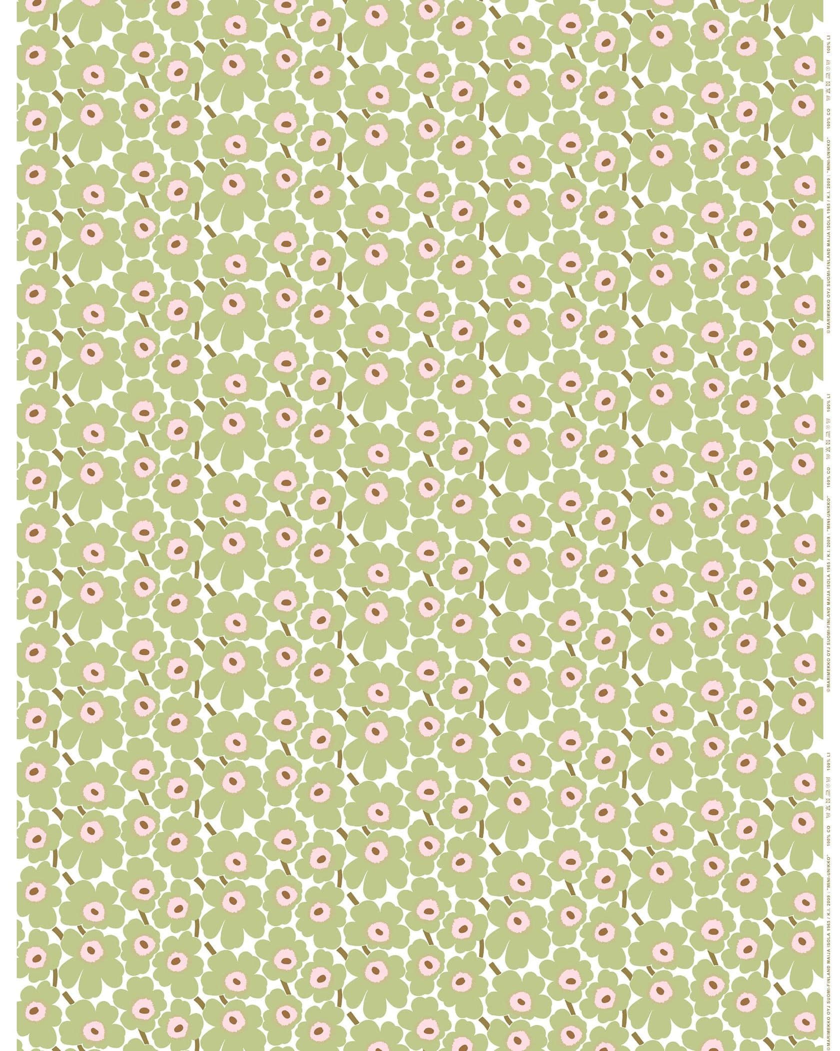 マリメッコの日本限定の新作ファブリック「ライトグリーン×ライトピンク×サンド」です。