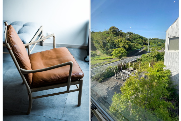 コロニアルチェア・ディベットのあるお部屋、西側から望むお庭と自然の風景が気持ちの良いです。