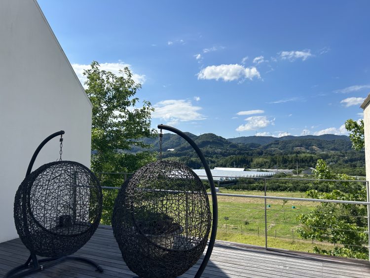ハンギングチェアに揺られながら星空と山々のシルエットが融合し心地よい時間を創ります。