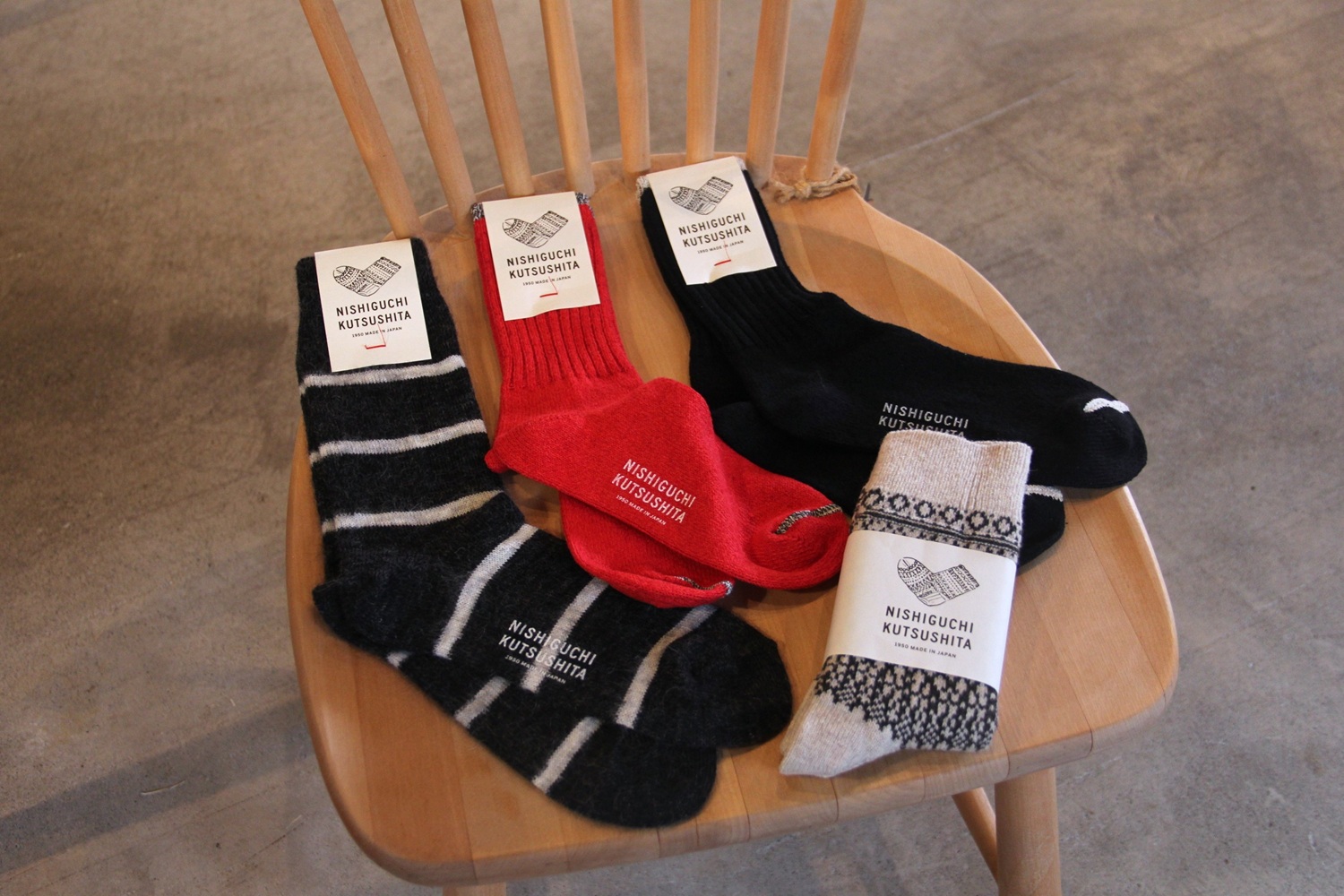 「NISHIGUCHI KUTSUSHITA」は1950年から変わらず靴下を作り続けるブランドです。