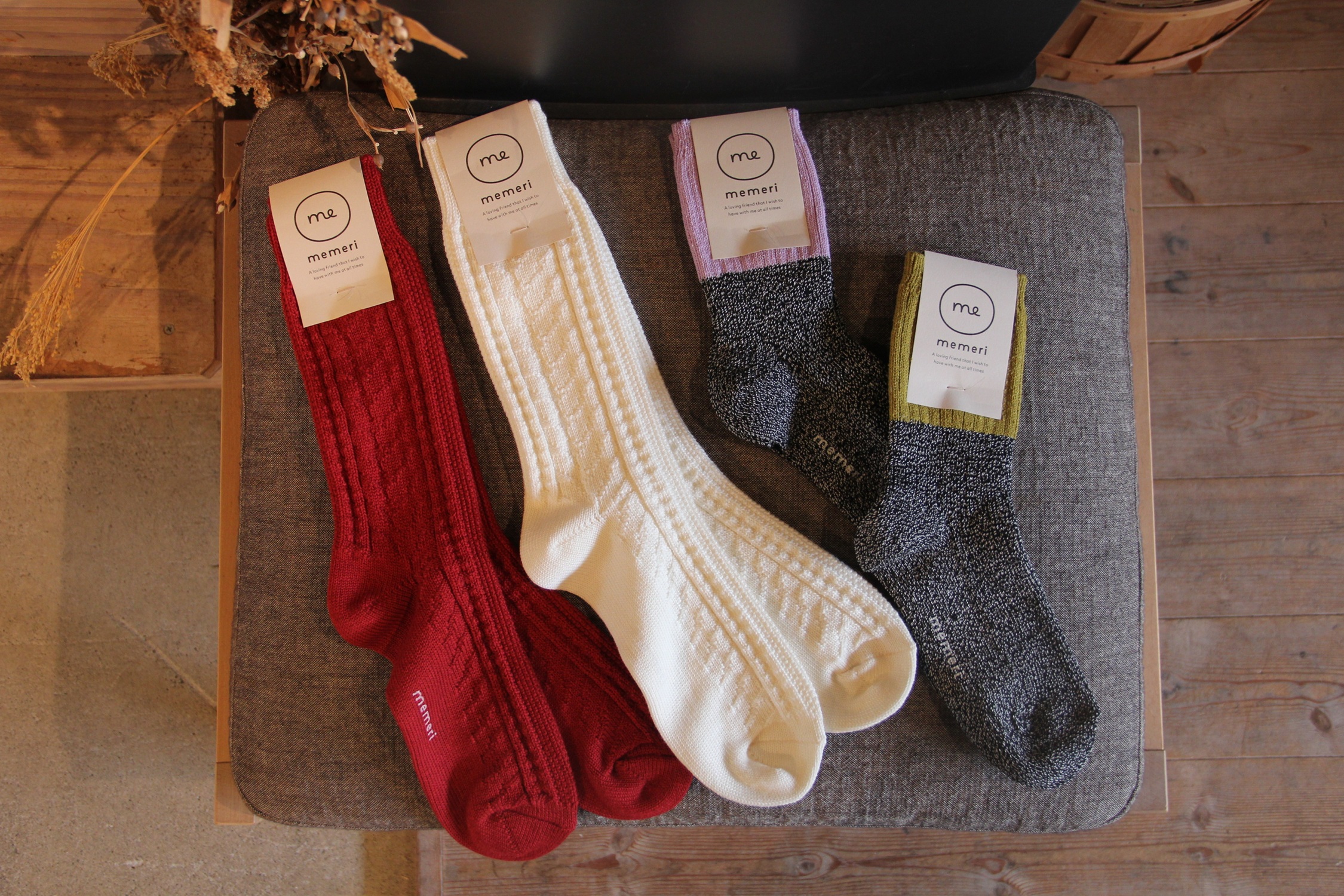 今回の靴下は秋冬用のロングタイプやウール素材の物のほかレギュラーアイテムも