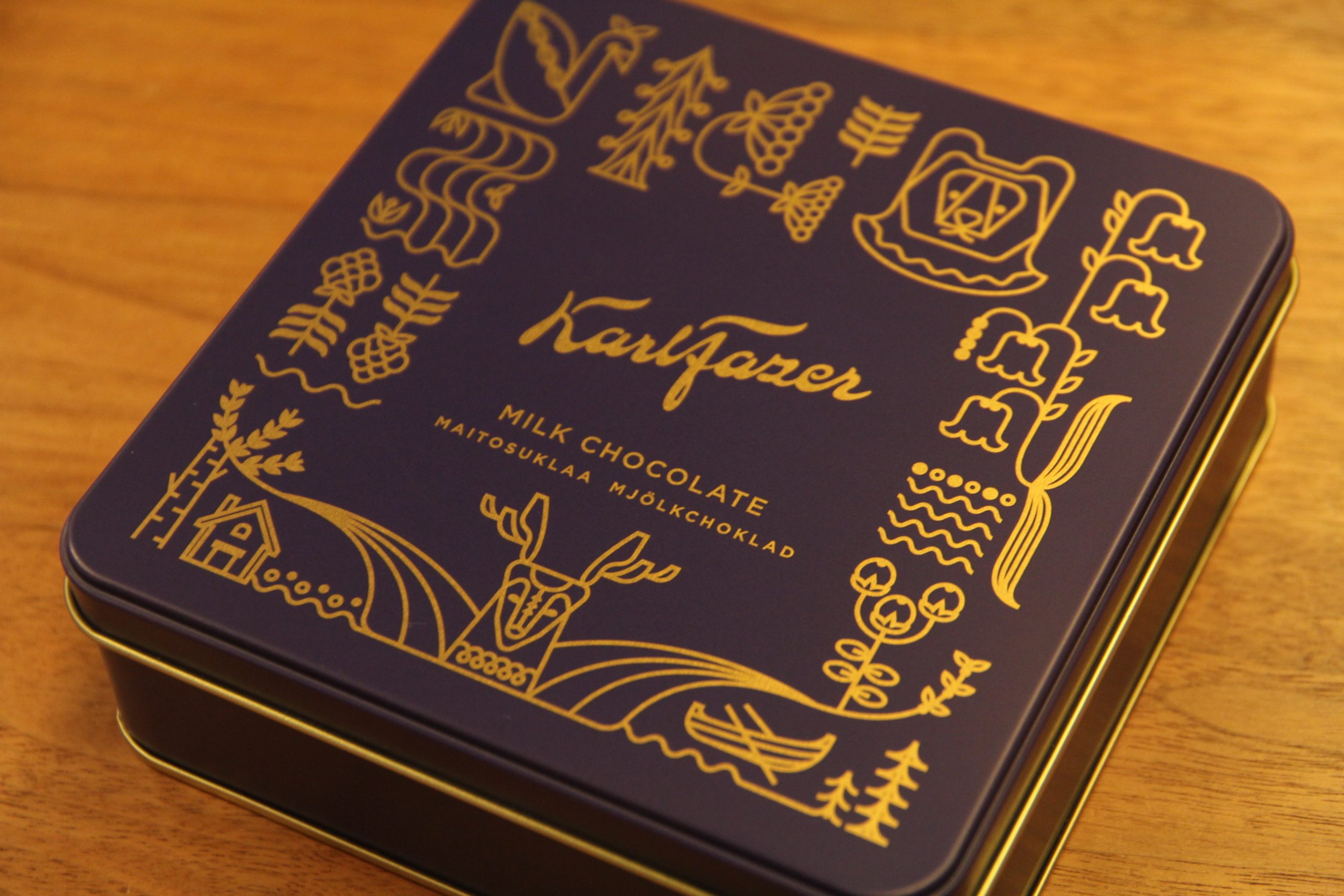 ▲フィンランド独立100周年を記念してデザインされた缶(ミルクチョコレート)